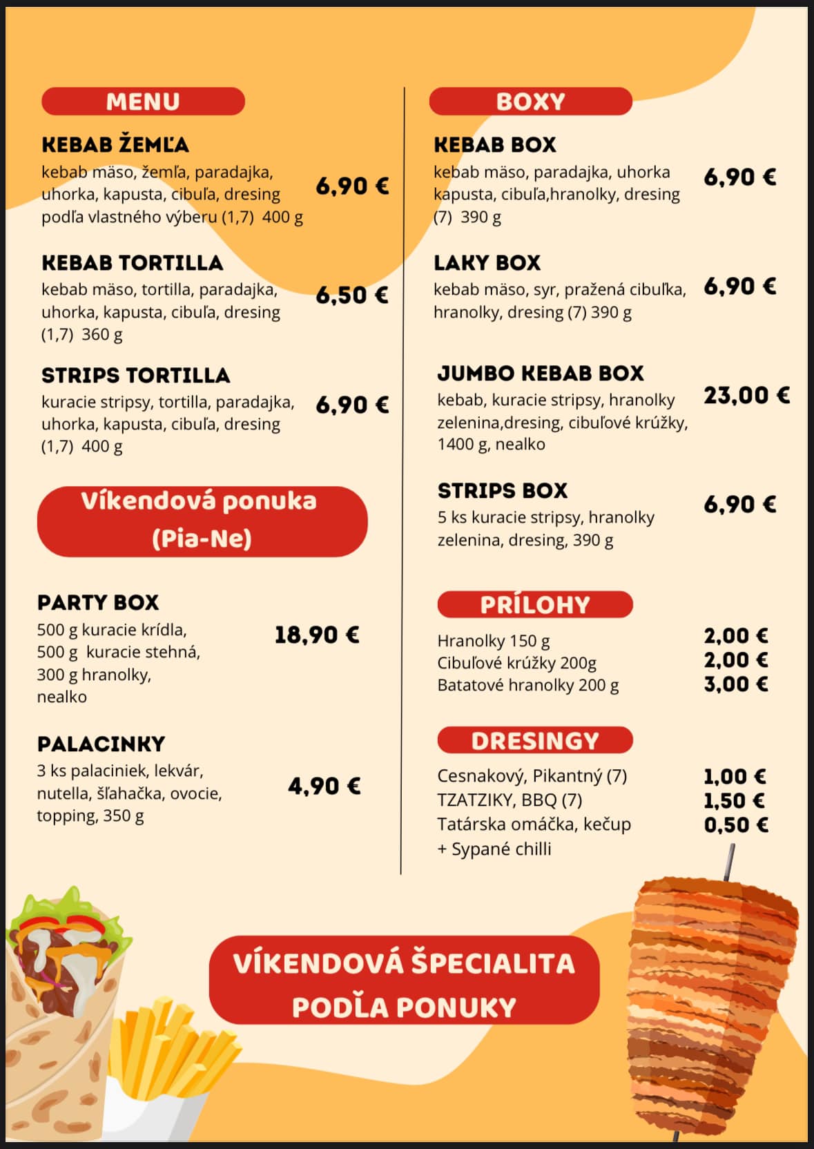 Naša prevádzka poskytuje moderné a pohodlné riešenie objednávania jedál prostredníctvom online systému. Zákazníci si môžu jednoducho vybrať z ponuky jedál cez webovú stránku alebo facebook, vytvoriť objednávku a zvoliť spôsob doručenia alebo osobného odberu.